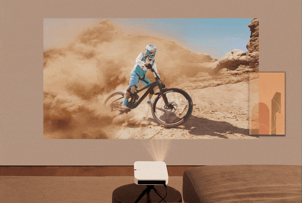 最大200インチ1のフルHD映像を大画面で楽しむことができるElfin。便利な自動画面調整機能により、家族みんながカンタンに高画質·高音質の映像体験をお楽しみいただけます。
