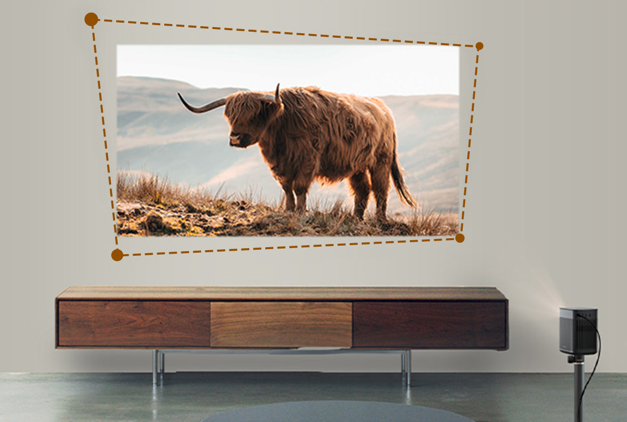 特許取得済みの「Smart keystone補正」により、電源を入れるだけで垂直方向に自動的に最大40°の台形補正が可能です。(水平方向:マニュアル)画面補正の手間を省き、最高の視聴体験を楽しめます。