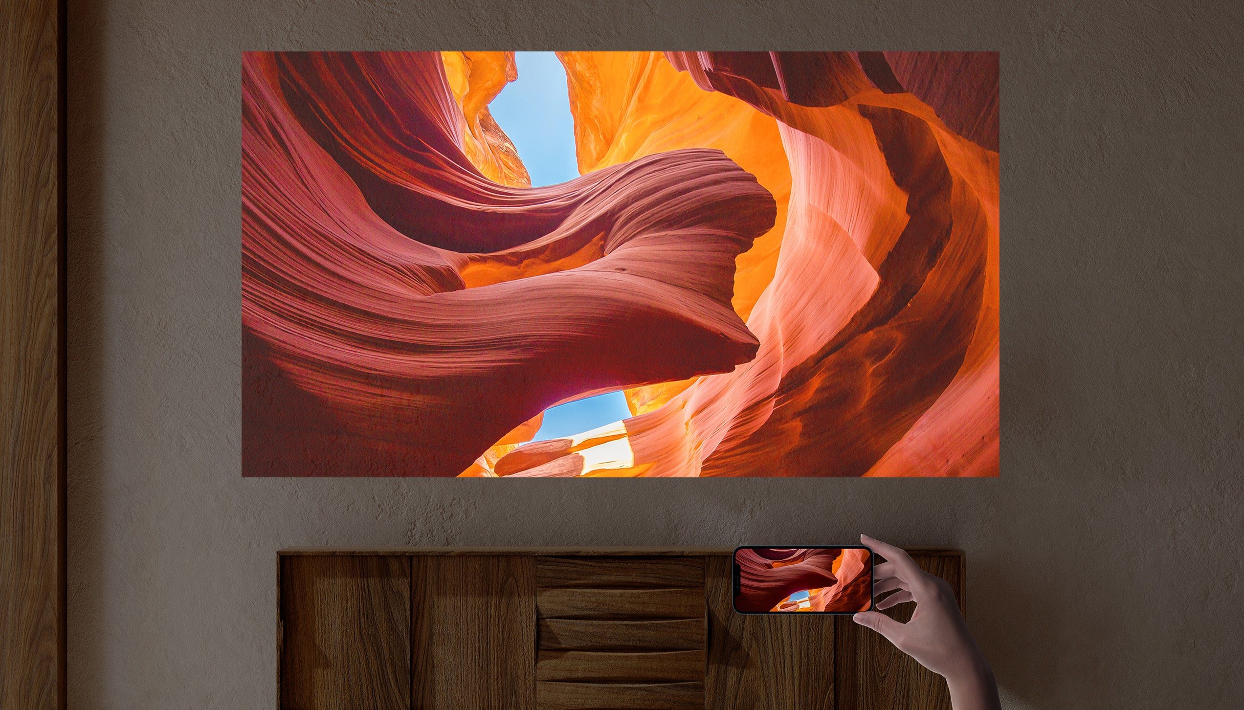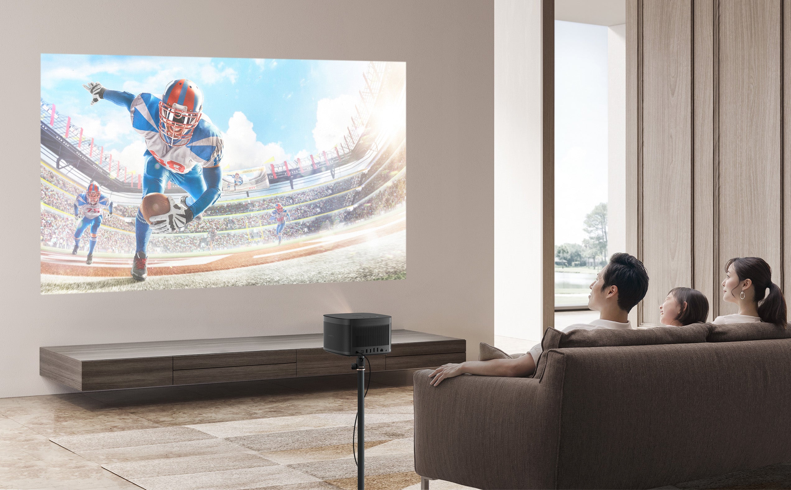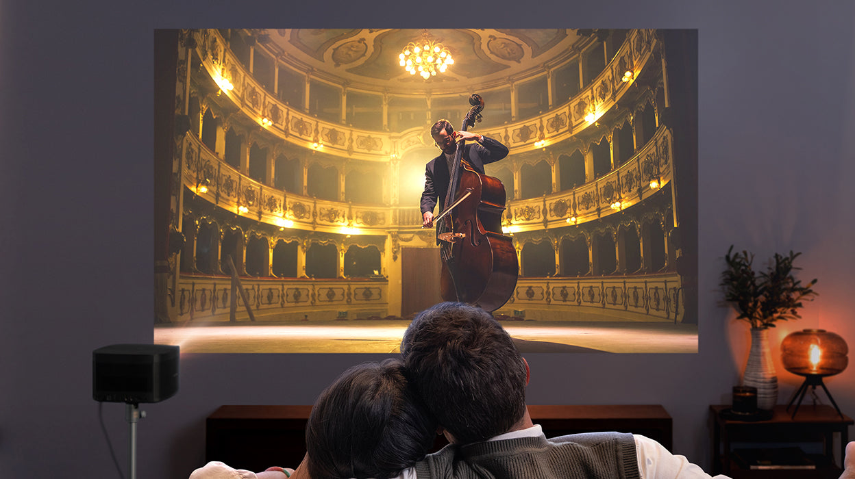 プロジェクターとしては最高レベルの4K映像を、最大解像度3840×2160、最大200インチの巨大なスクリーンサイズで映し出します。超巨大スクリーンで映像を堪能する、贅沢な時間をあなたに。