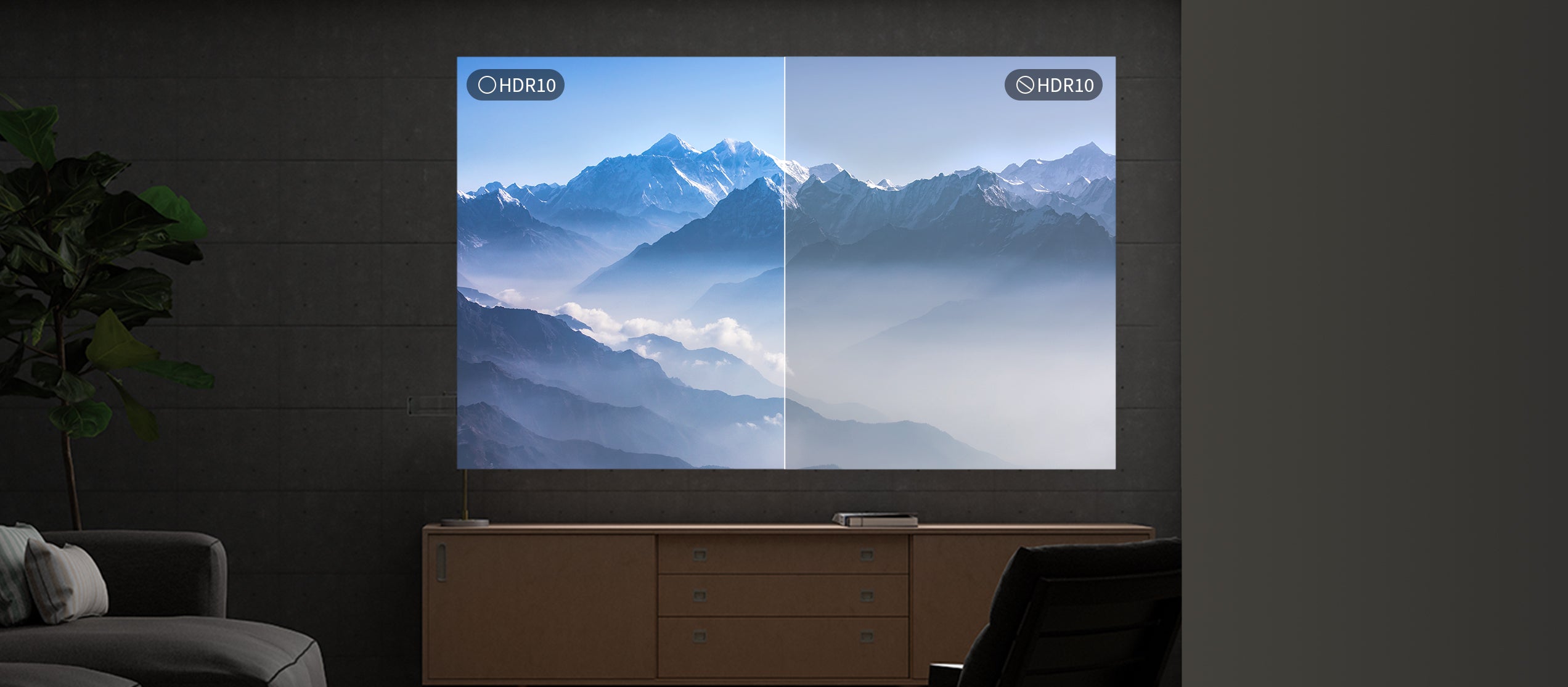世界に認められるプロジェクターブランドXGIMIの持つ、様々な映像技術を結集したのが、このHORIZON Proです。たとえば、フレーム補間技術「MEMC」。スポーツやゲームなど激しい動きを投影する際も、独自の特殊なアルゴリズムによって映像のブレを防止し、シャープな映像が維持できます。また、画像エンジンシステム「X-VUE2.0」は、画質をクリアに、色彩はよりリアルに投影。そして「HDR10技術」により、高いコントラスト比で映像の細かい部分まで鮮明に映し出します。