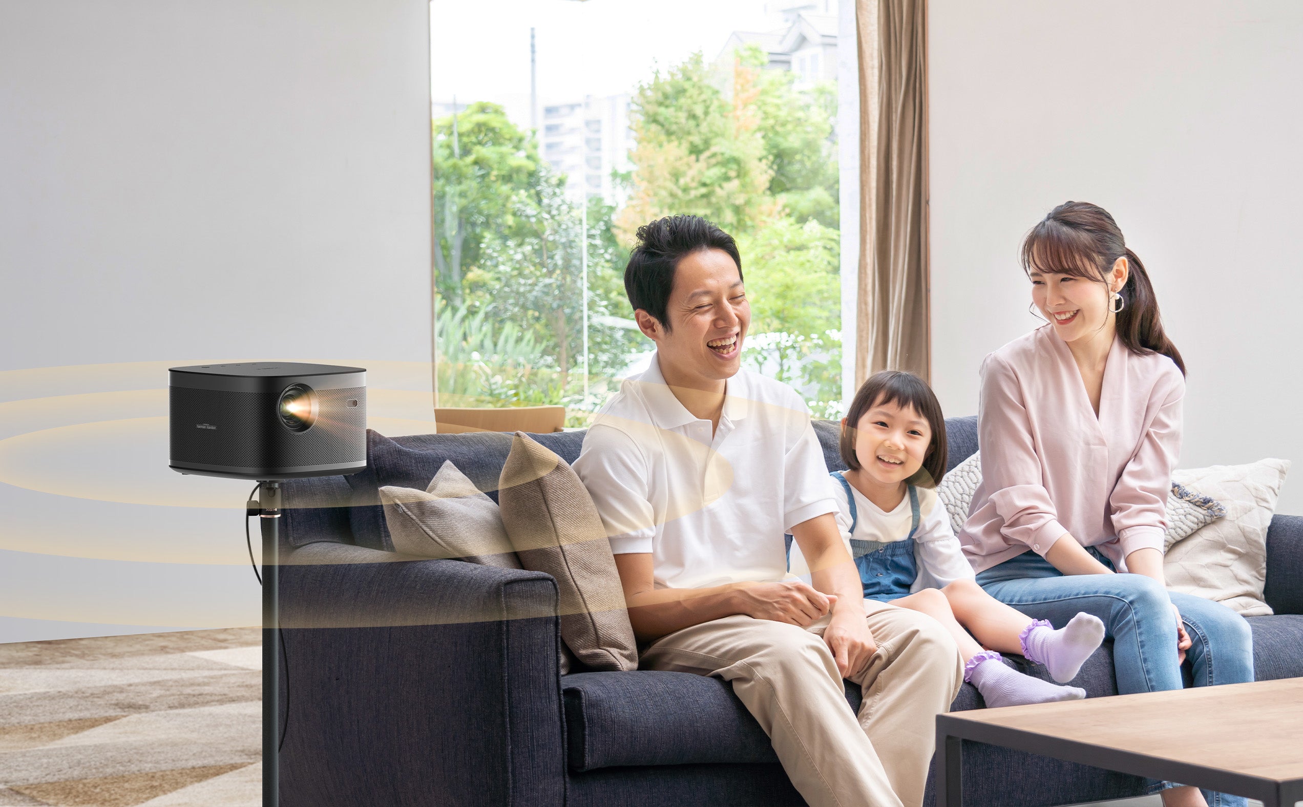 4K映像を最大200インチ1の大画面で楽しむことができるHORIZON Pro。高品質な映像と本格的な音響システムで、まるで映画館にいるような臨場感。次世代プロジェクターならではの感動をあなたに。