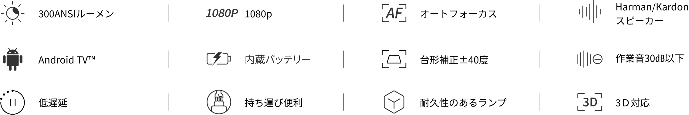 電源を入れるだけで垂直方向と水平方向に最大40°の台形補正が可能です。また、素早いオートフォーカス機能が電源を入れるだけで数秒以内に自動でピント調整。わずらわしい調整は必要ありません。