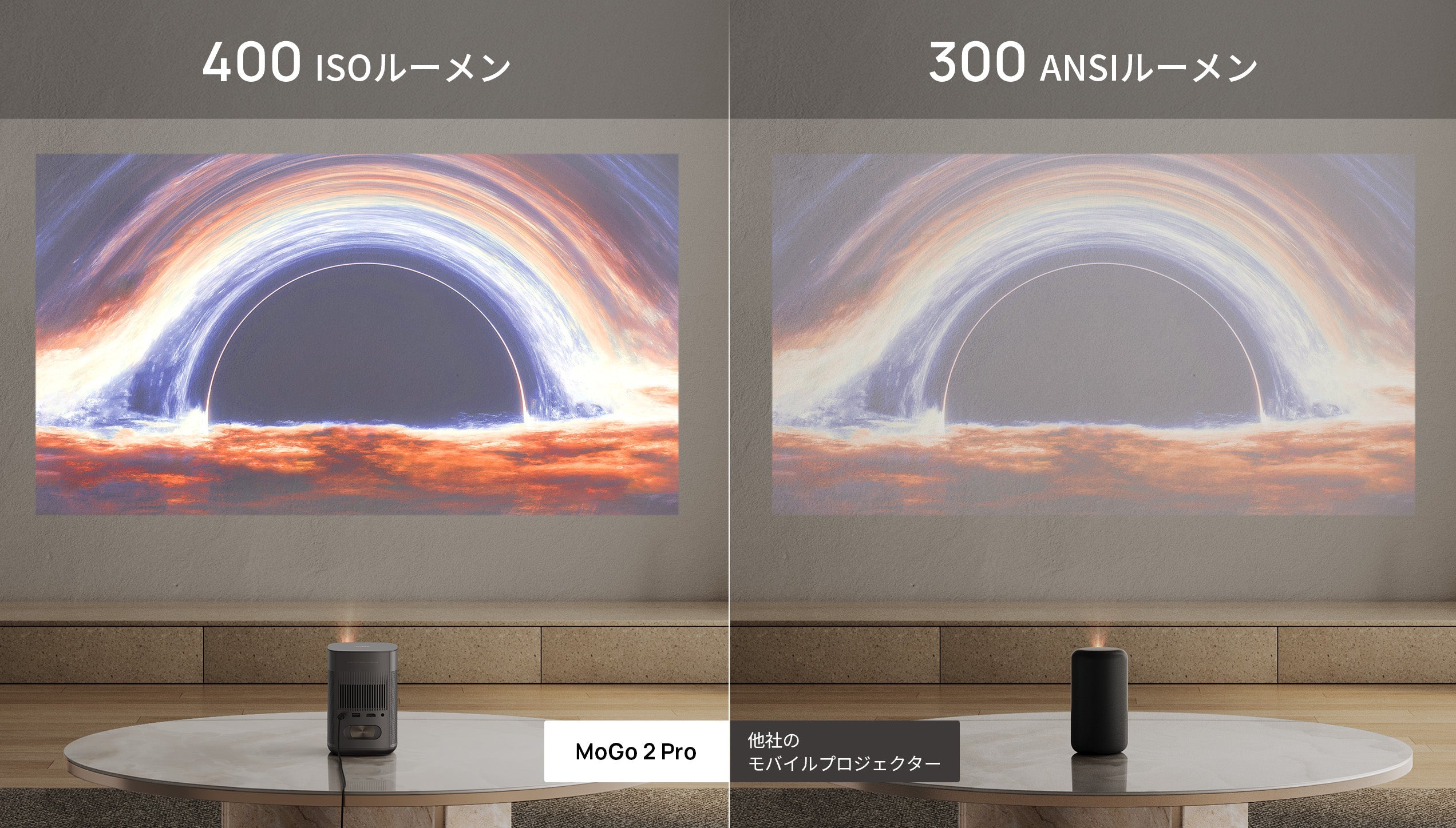 MoGo 2 Proは鮮明な細部描写と忠実な色の再現によって、120インチの投影面を明るく、そして鮮明に映し出します。