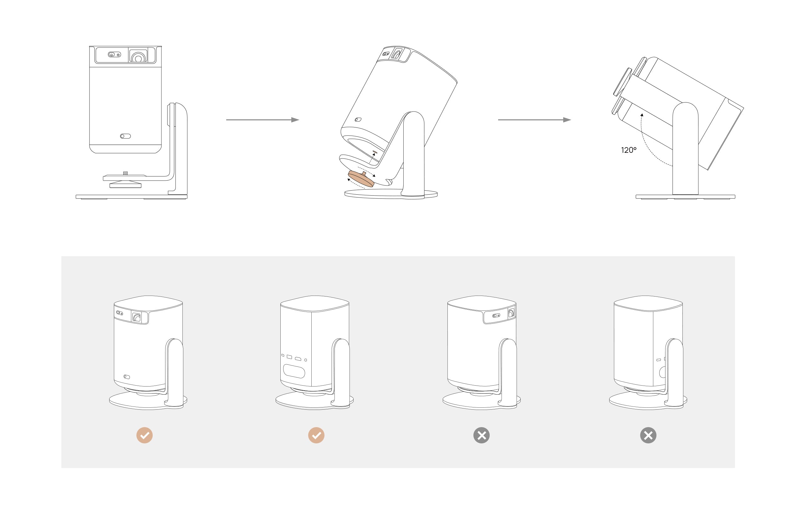 - 製品の損傷や故障を避けるため、マルチアングル スタンドを120°以上動かしたり、調整したりしないでください。