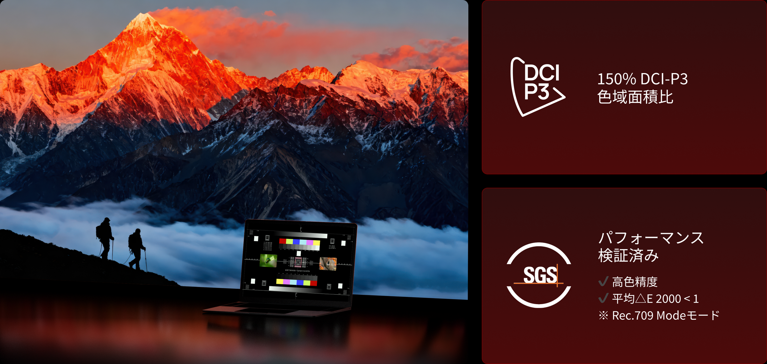 ハードウェア処理による画質強化で、暗部階調の乱れや色ズレを抑制します。さらに個別キャリブレーションによる長期色精度の安定を維持。
