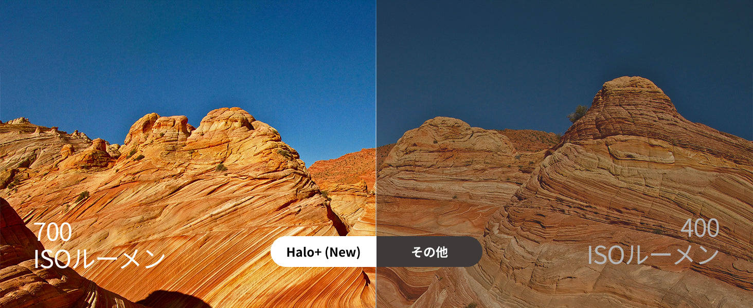 - 1080Pの解像度:Halo+(New)はポータブルプロジェクターで、もっとも明るい700 ISOルーメンに加え、1080pのフルHDの高解像度で鮮やかな映像を楽しめます。リビングでゲームを楽しむときも、キャンプ場で映画を楽しむときも、様々な場所でHalo+(New)は明るく美しい映像をお届けします。